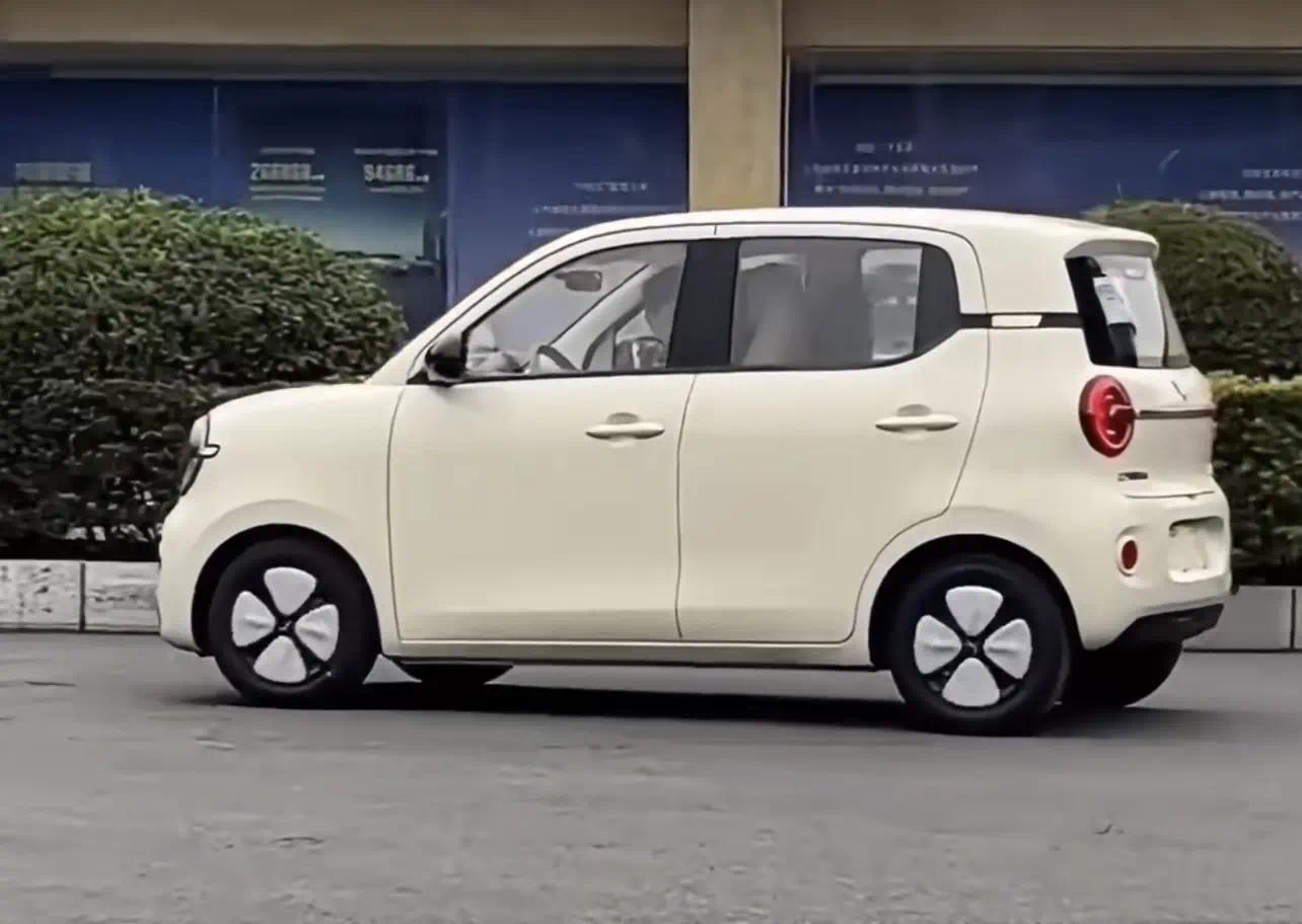 然后就是全新一代的五菱宏光MINIEV的车身的侧面采用的是饱满的车身,它的边角采用的是非常圆润的风格,看起来也更有亲和力。新车的C柱的底端有一个黑色的装饰条点缀,车侧面的中间采用的是简约化的车身,车面非常的平静。全新五菱宏光MINIEV的车轮毂采用的是四叶草式的轮毂盖,很有辨识度。