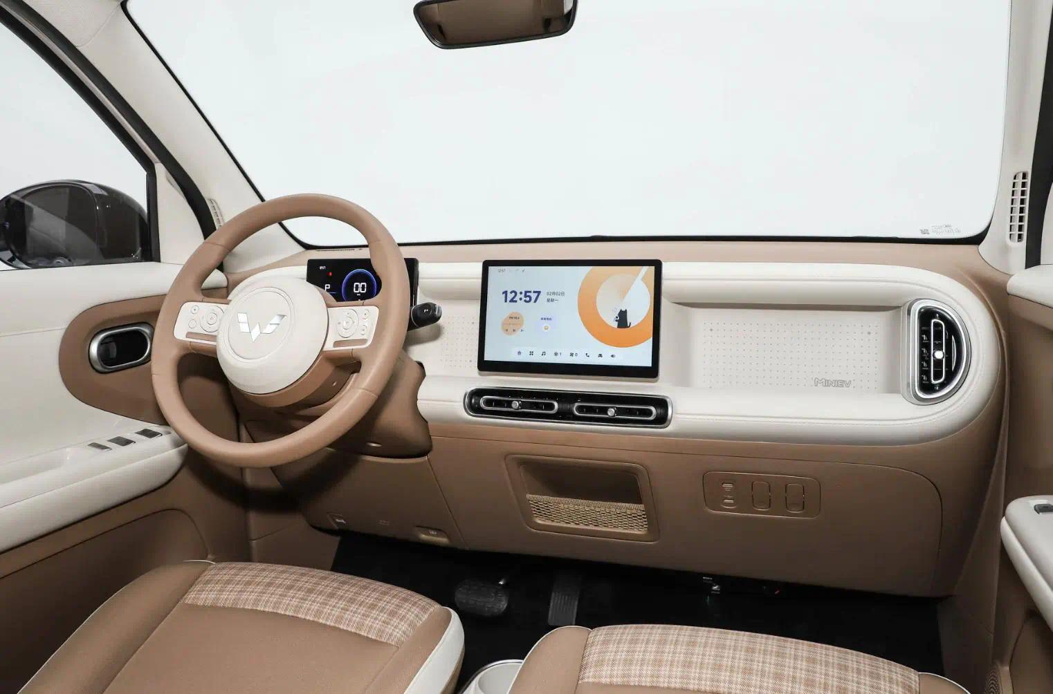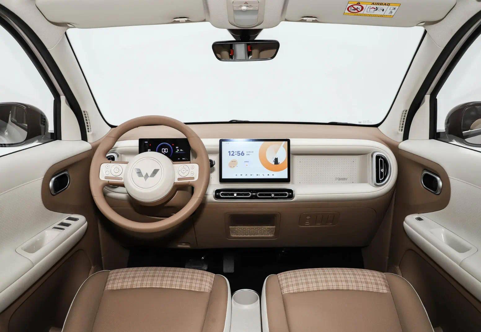 在内饰方面,我们可以看到全新五菱宏光MINIEV采用的是极简化的布局方式,它采用的是很有立体效果的设计,中控台的中间是一个凹槽,采用了造型可爱的两幅式的方向盘,它还有悬浮式的仪表和悬浮式的中控大屏,空调出风口的造型也非常的特别。此外,新车采用的是双拼的内饰颜色,也增加了它内饰的可观赏性。新车的第二排的座椅空间表现也非常的不错,比其它的两门版的代步车确实实用,并且座椅也采用拼接式的风格,后排上下车不用和前侧冲突。在动力方面,全新一代的五菱宏光MINIEV搭载的是30千瓦的电机,采用16.2kWh、25.1kWh电池组,CLTC续航里程分别为205km、301km。
